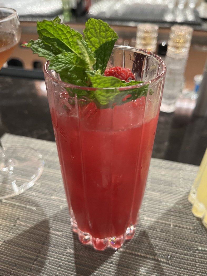 Later on we once again tried for a pre-dinner cocktail at the speakeasy (#IYKYK), so shortly before 5:30 PM we obtained our pager and took a seat in our favorite waiting room: a stool at The Club bar. Rona ordered her now traditional and most favorite Hibiscus Collins with diet tonic, while I went for the always traditional Old Fashioned.